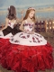 Sleeveless Floor Length Embroidery and Ruffles Lace Up Little Girls Pageant Dress with Red