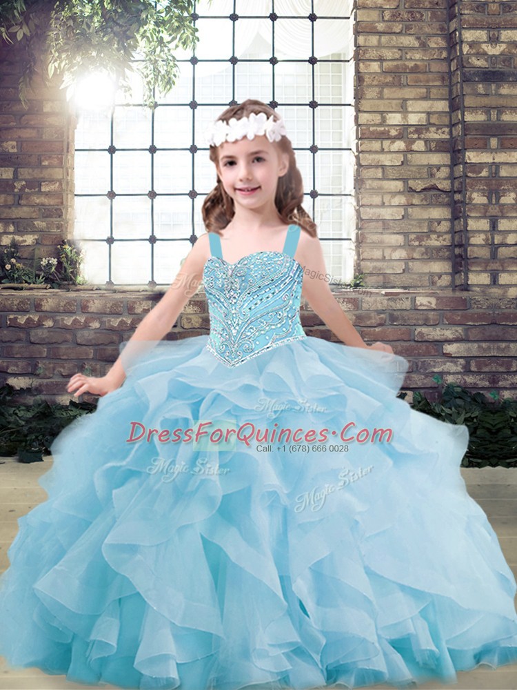 Sleeveless Lace Up Floor Length Beading and Ruffles Kids Pageant Dress