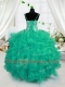 Sleeveless Organza Floor Length Lace Up Flower Girl Dresses for Less in Turquoise with Beading and Ruffles