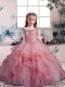 Sleeveless Organza Floor Length Lace Up Little Girl Pageant Gowns in Pink with Beading and Ruffles