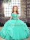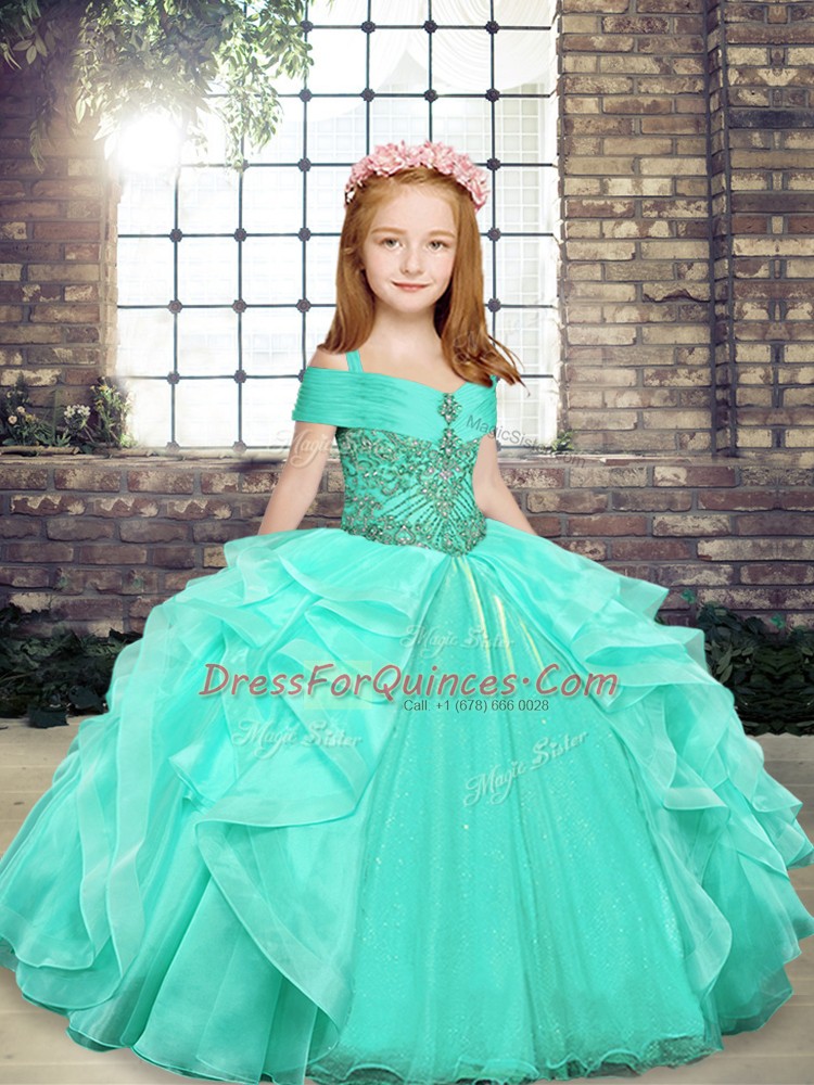 Super Organza Straps Sleeveless Lace Up Beading Kids Pageant Dress in Apple Green
