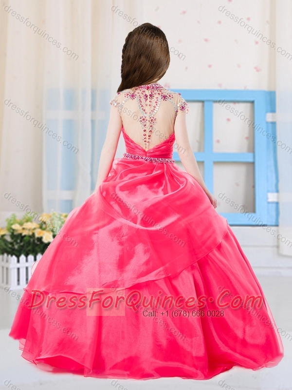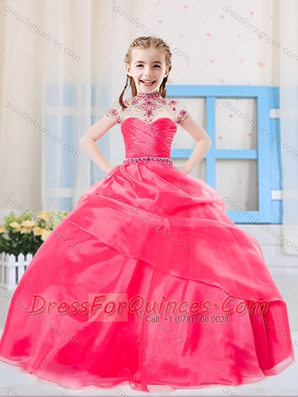 Sweet Ball Gown High Neck Organza Coral Red Mini Quinceanera Dress with Beading