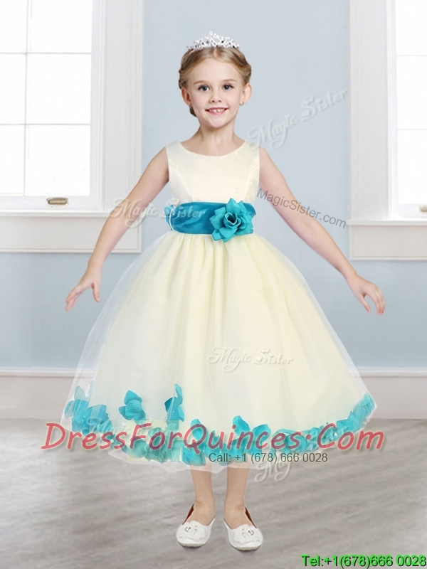 Sweet Scoop Mini Quinceanera Dress with Hand Made Flowers and Appliques