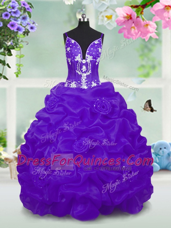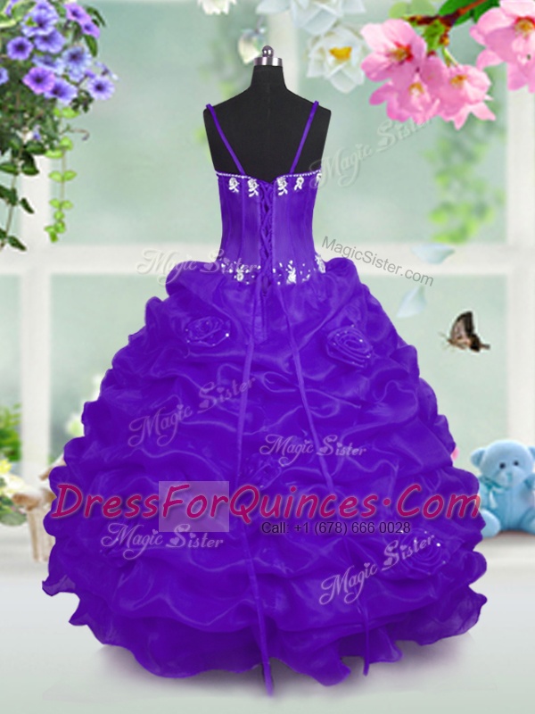 Taffeta V-neck Sleeveless Lace Up Beading and Pick Ups Flower Girl Dresses in Purple