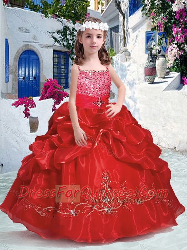 Top Selling Spaghetti Straps Little Girl Pageant Dresses with Beading and Bubles