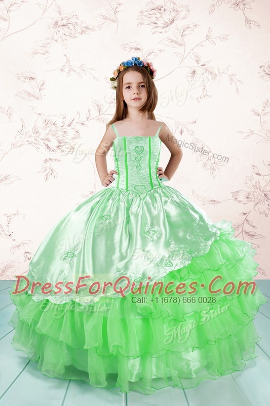 Traditional Floor Length Lace Up Flower Girl Dresses for Party and Wedding Party with Embroidery and Ruffled Layers