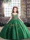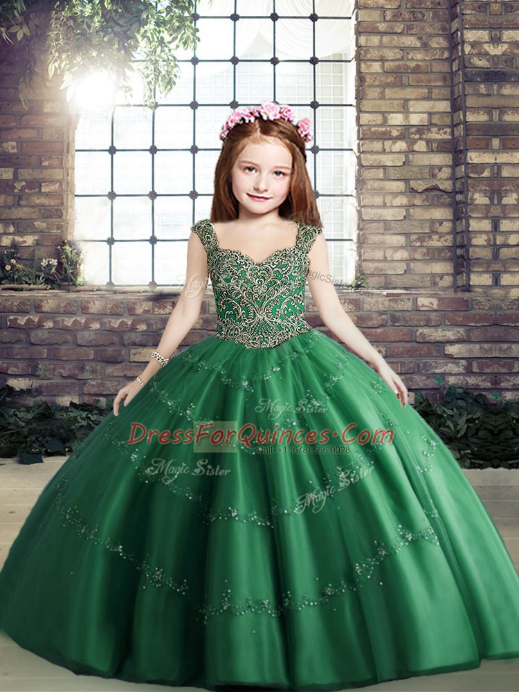 Trendy Straps Sleeveless Pageant Gowns For Girls Floor Length Beading Dark Green Tulle