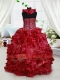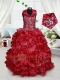 Wine Red Ball Gowns Taffeta Halter Top Sleeveless Beading and Ruffles and Sequins Floor Length Zipper Flower Girl Dresses