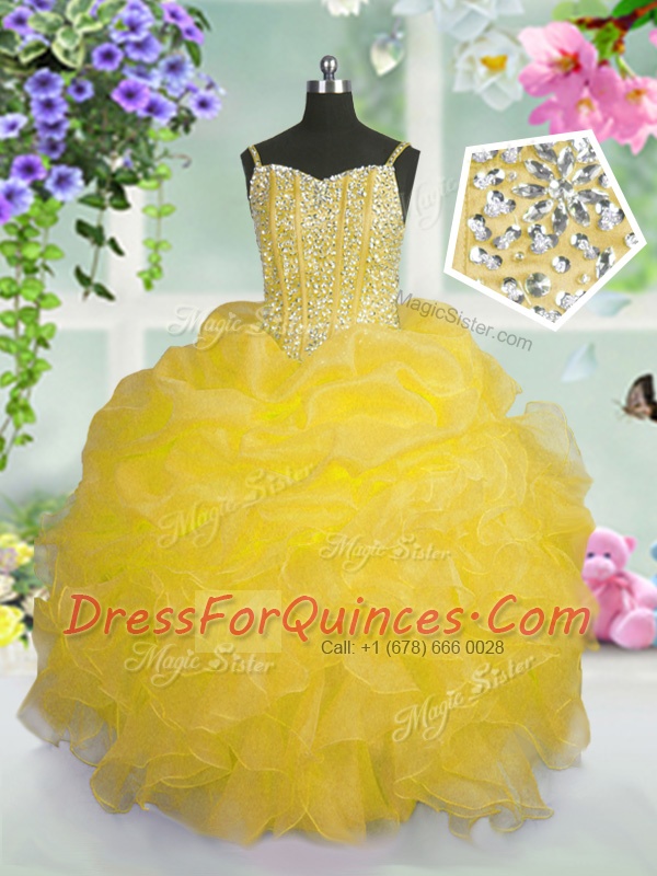Wonderful Organza Sleeveless Floor Length Flower Girl Dresses and Beading and Ruffles and Pick Ups