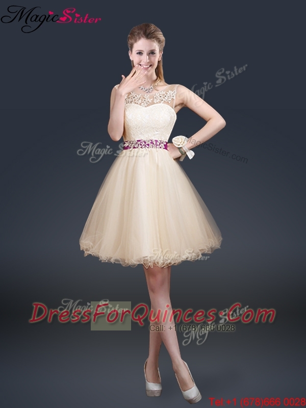 2016 Beautiful Scoop Dama Dresses with Appliques and Belt