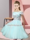 Appliques Dama Dress for Quinceanera Apple Green Lace Up Short Sleeves Knee Length