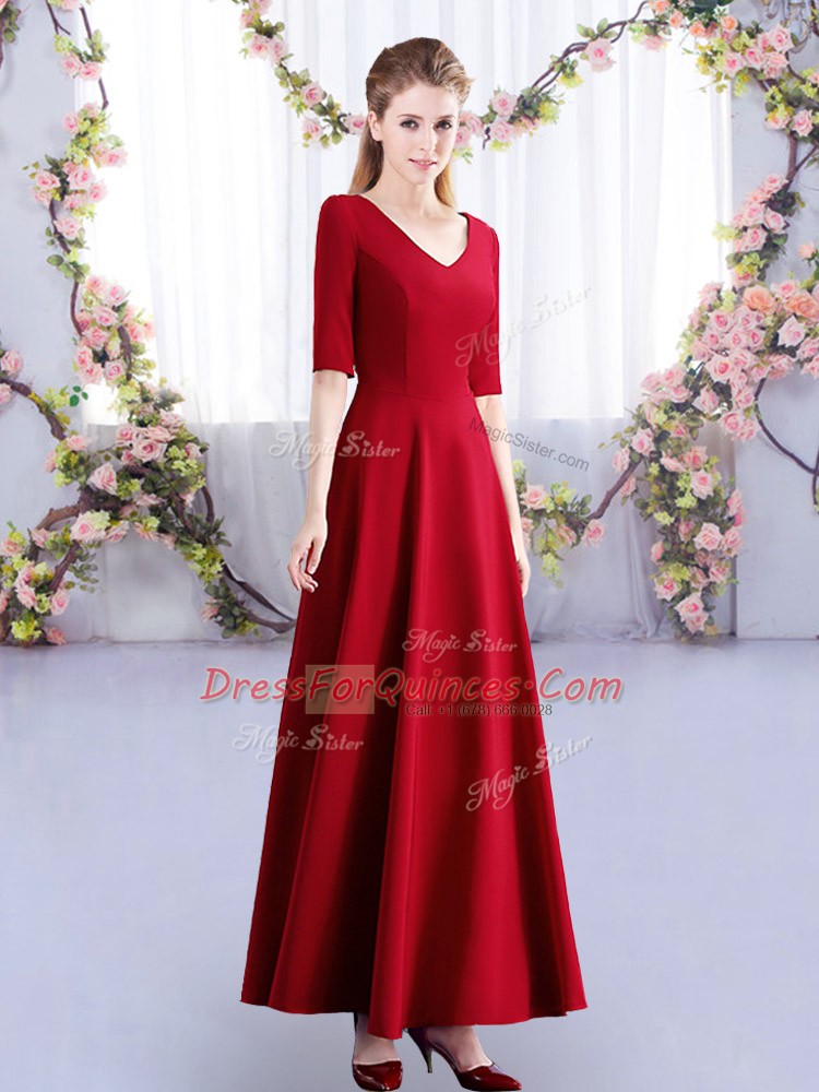 Beauteous V-neck Half Sleeves Satin Quinceanera Court of Honor Dress Ruching Zipper