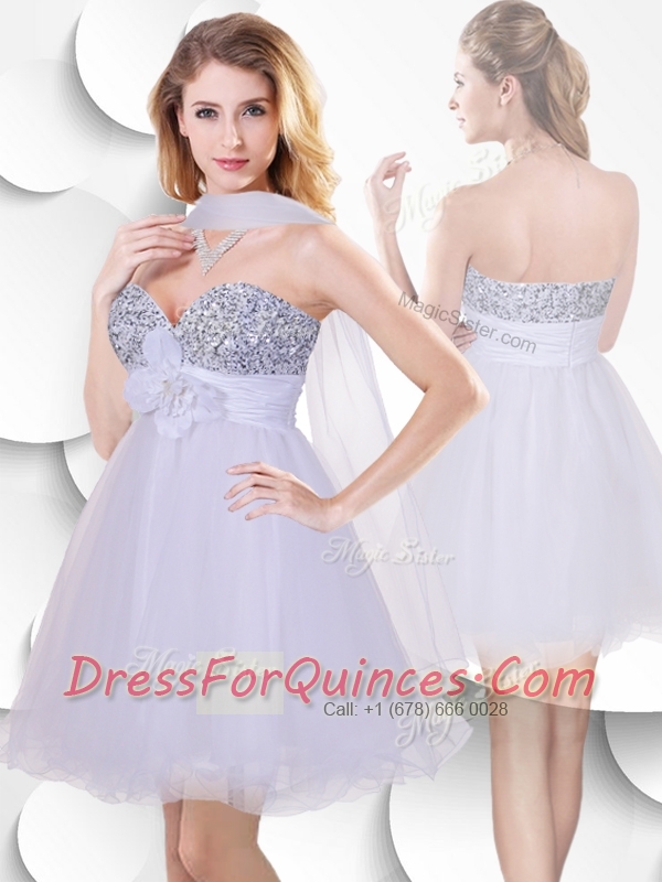 Beautiful Short 2016 Dama Dress with Sequins and Hand Made Flowers