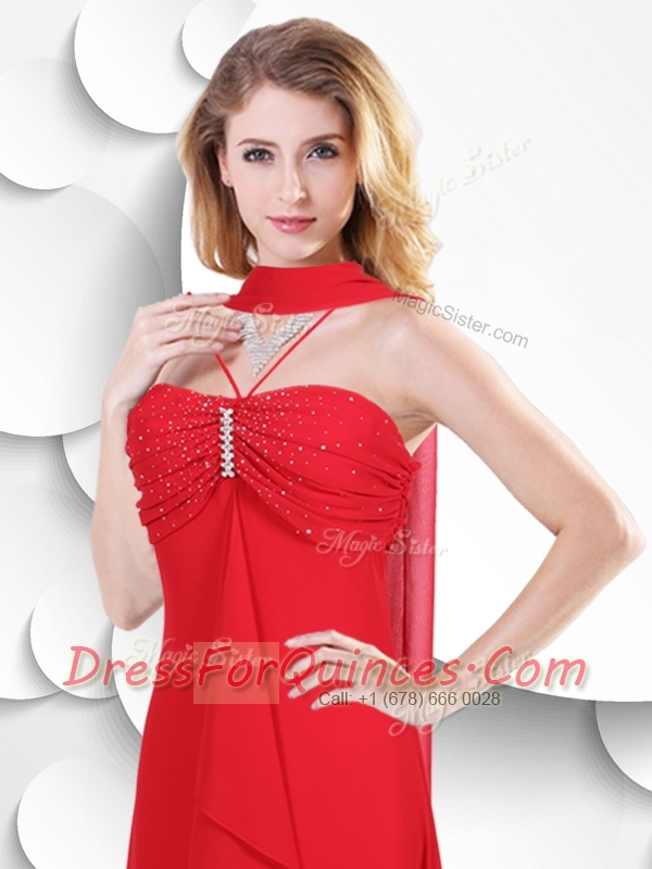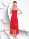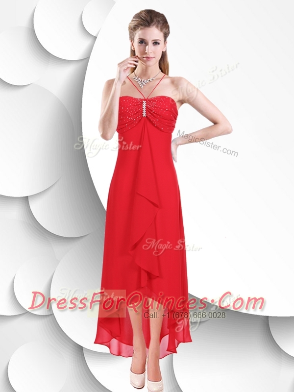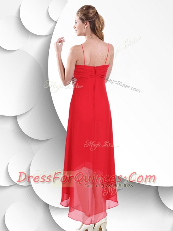 Best Spaghetti Straps High Low Red 2016 Dama Dress with Beading
