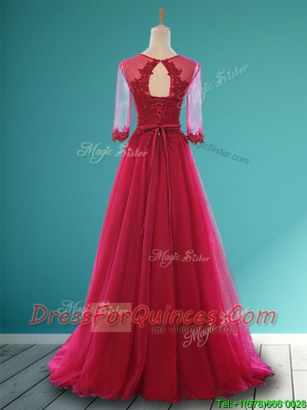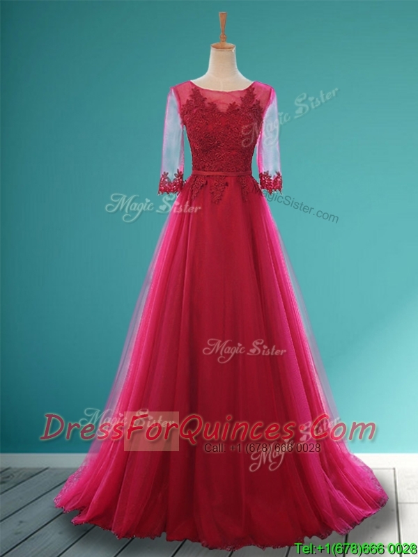 Cheap Scoop Appliques and Belt Dama Dresses in Wine Red