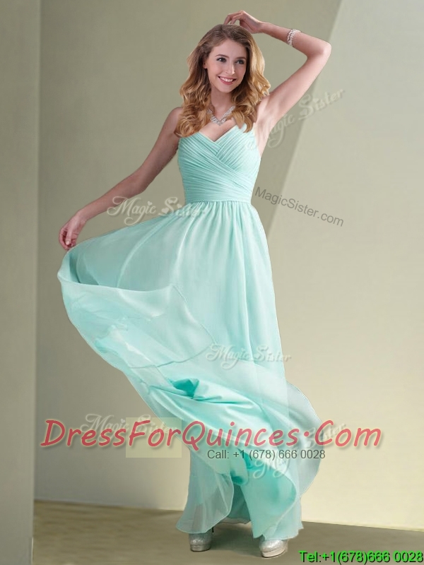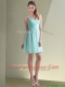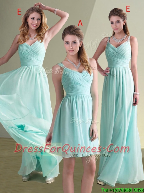 Cheap Straps Beaded and Ruched Aqua Blue Dama Dress in Chiffon