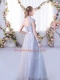 Dazzling Empire Quinceanera Court of Honor Dress Grey High-neck Tulle Cap Sleeves Floor Length Lace Up