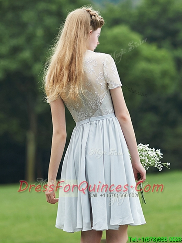 Elegant Sweetheart Short Sleeves Dama Dresses with Belt and Lace