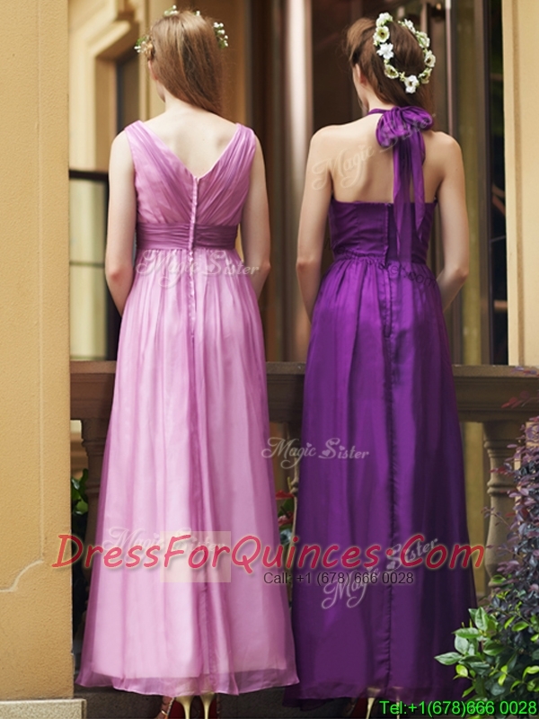 Exclusive Empire Chiffon Ankle Length Dama Dresses with Ruching