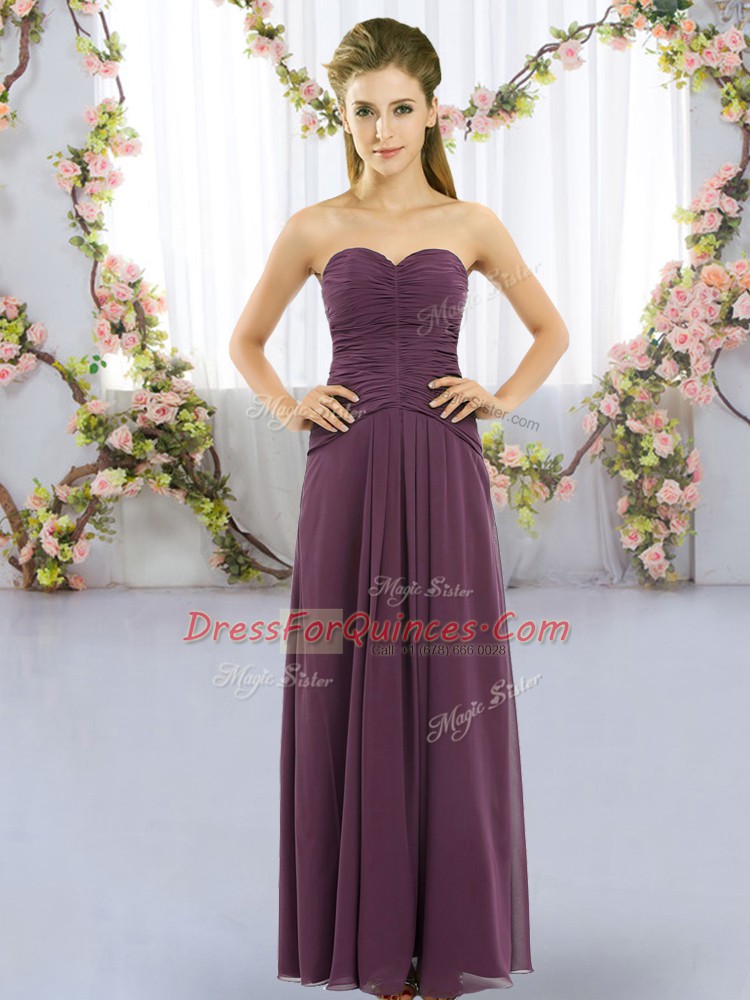 Fashion Dark Purple Sleeveless Chiffon Lace Up Vestidos de Damas for Wedding Party