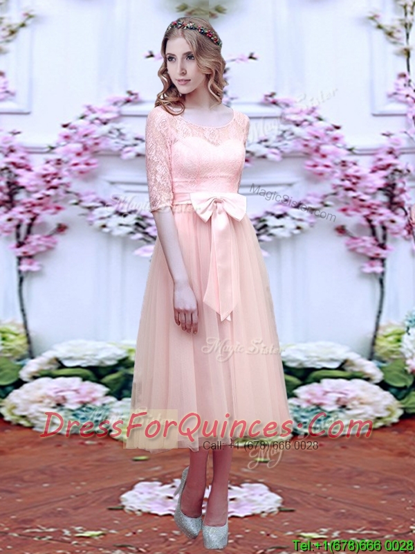 Fashionable See Through Scoop Half Sleeves Dama Dresses with Bowknot