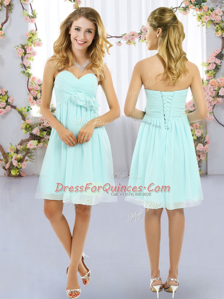 Flare Mini Length Aqua Blue Dama Dress Sweetheart Sleeveless Lace Up