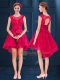 Free and Easy Scoop Sleeveless Clasp Handle Vestidos de Damas Wine Red Satin and Lace