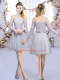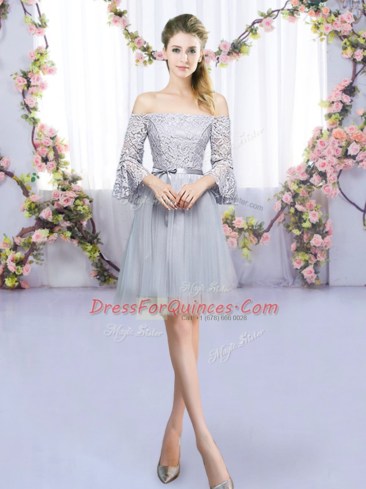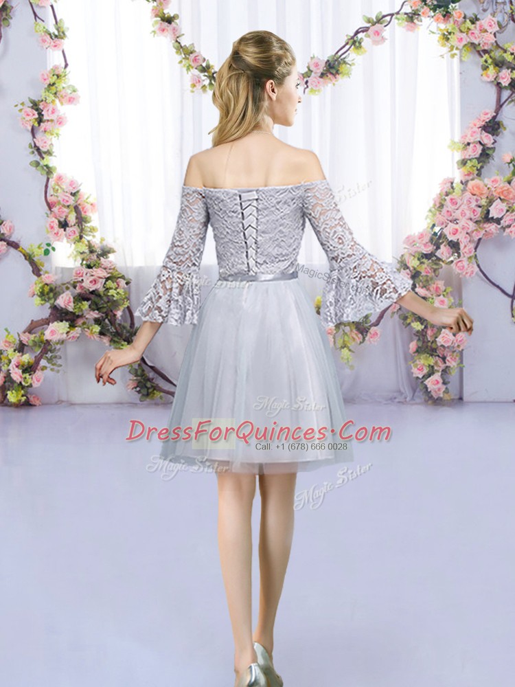Grey 3 4 Length Sleeve Lace and Belt Mini Length Damas Dress