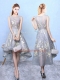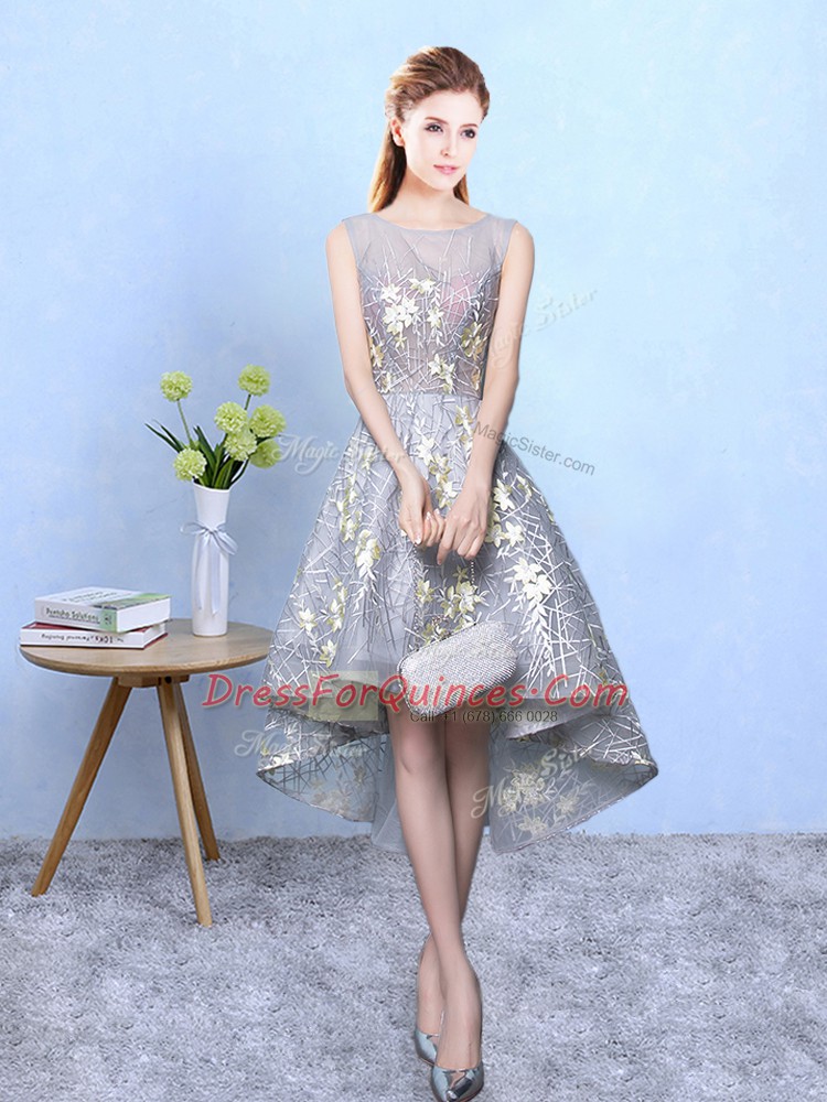 Grey A-line Printed Scoop Sleeveless Pattern High Low Zipper Court Dresses for Sweet 16