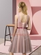 High Quality Sleeveless Tulle Knee Length Lace Up Dama Dress for Quinceanera in Green with Appliques