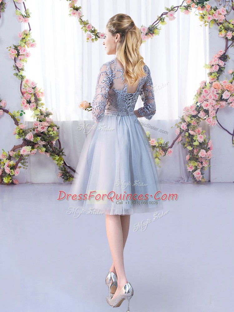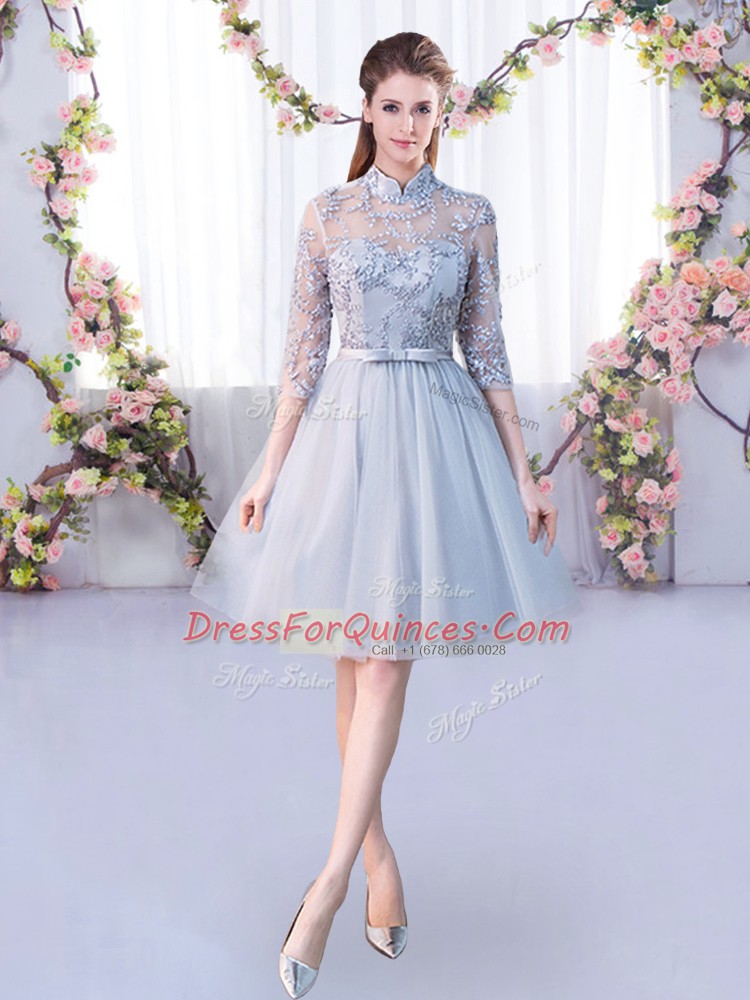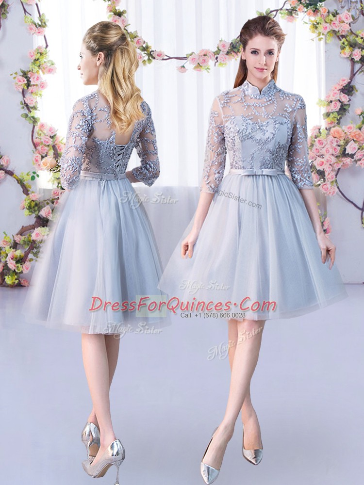 High-neck Half Sleeves Tulle Quinceanera Court of Honor Dress Lace and Belt Lace Up