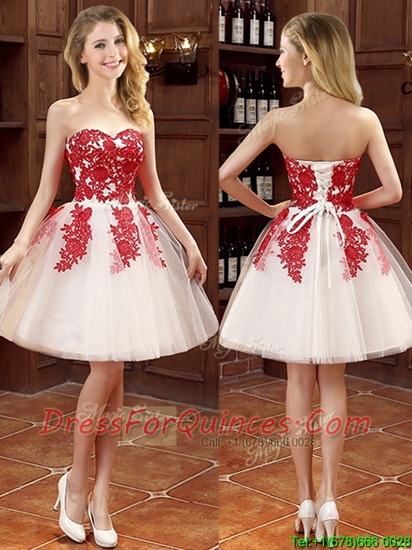 Hot Sale Mini Length Appliques Dama Dresses in White