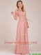 Modest Ruched Decorated Bodice Peach Dama Dresses with V Neck