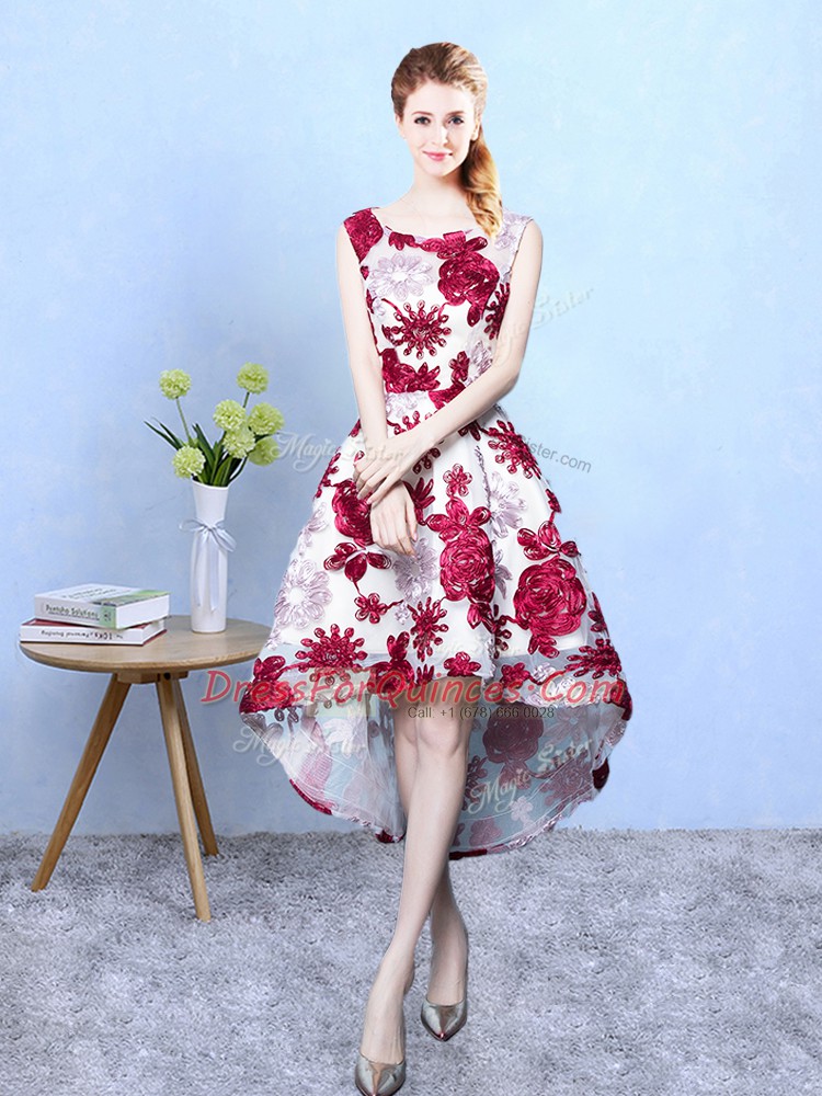 Multi-color Printed Lace Up Scoop Sleeveless High Low Dama Dress Pattern