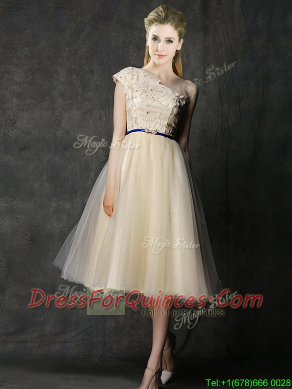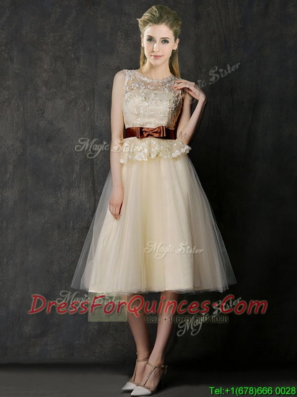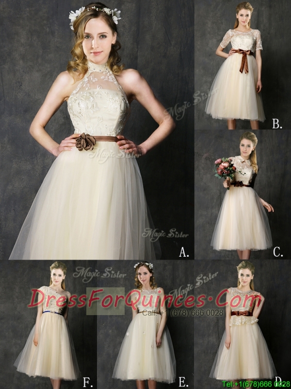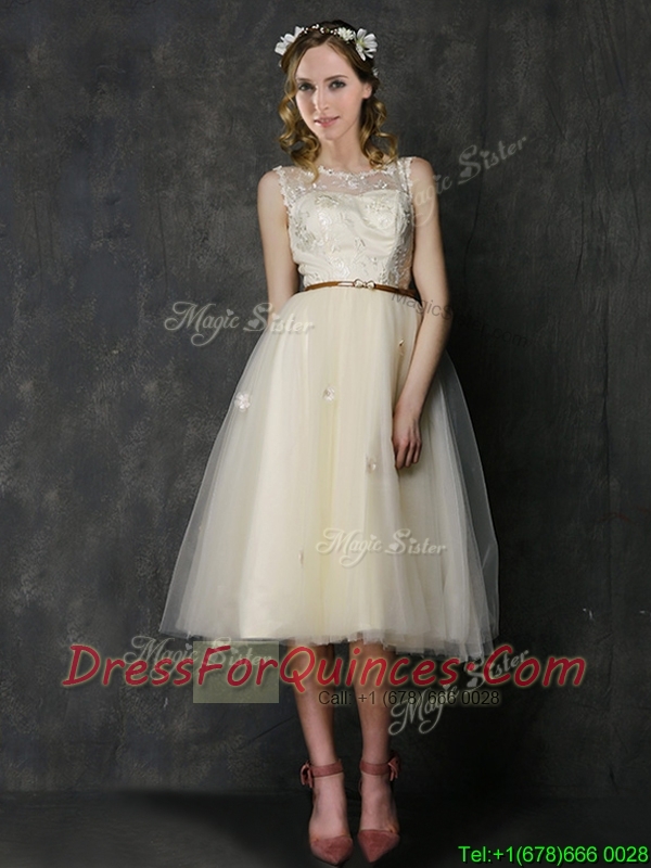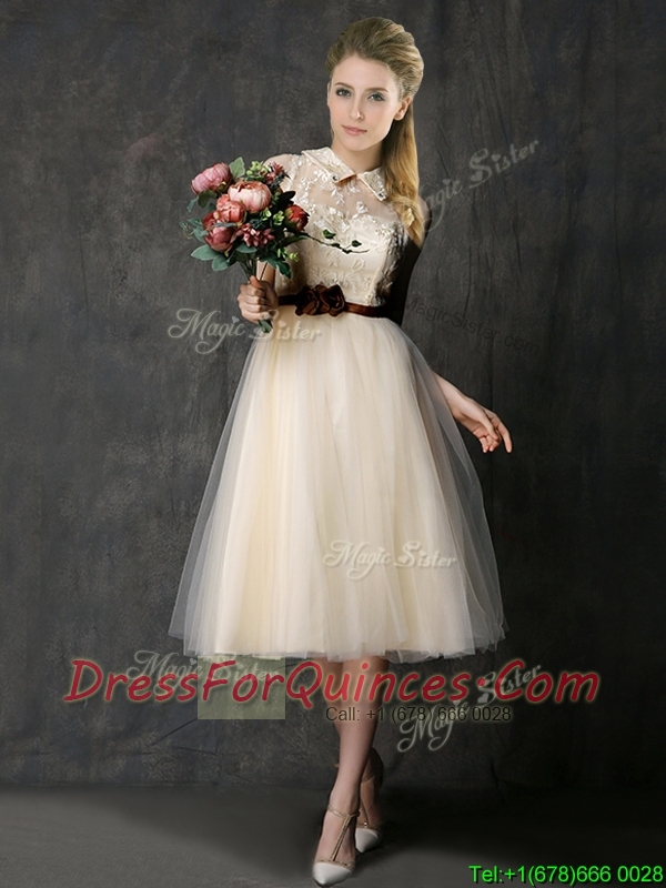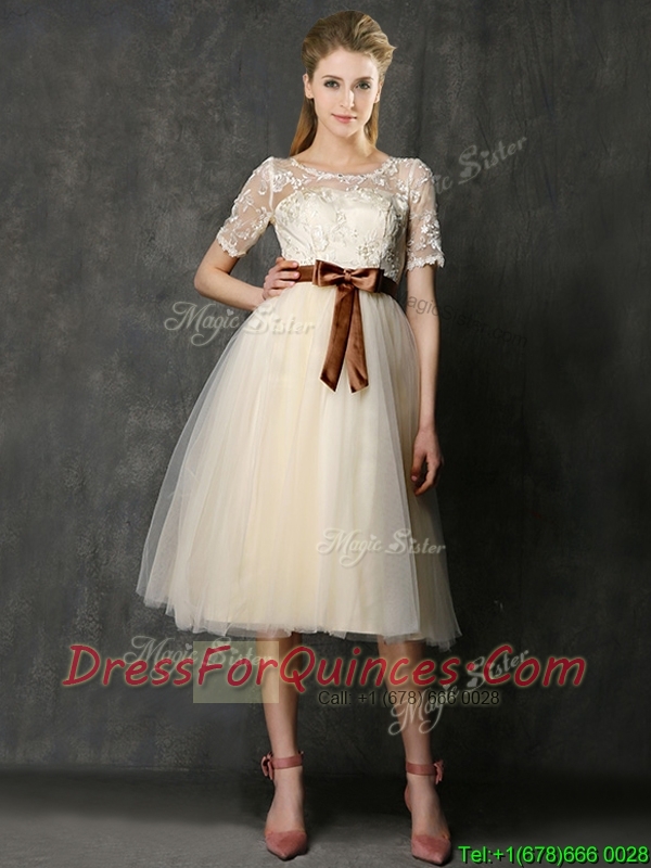 New Arrivals Knee Length Champagne Dama Dresses with Lace