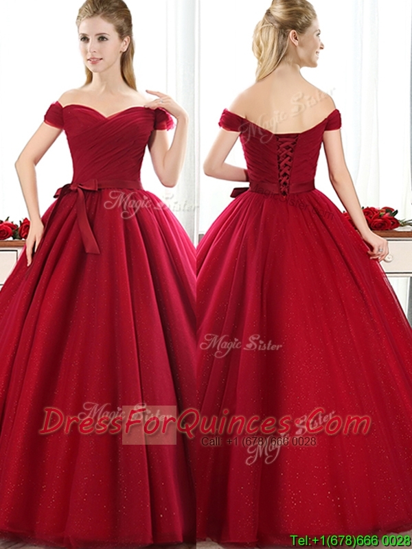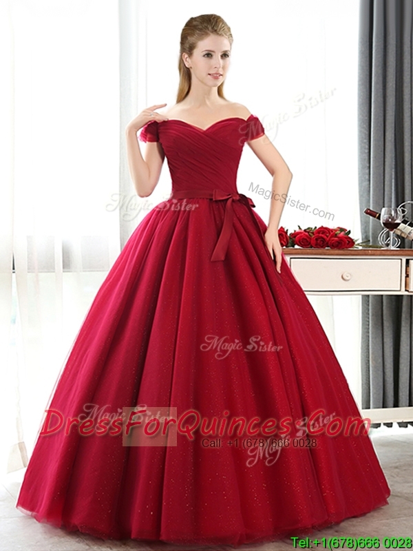 New Arrivals Off the Shoulder Wine Red Dama Dresses with Bowknot