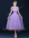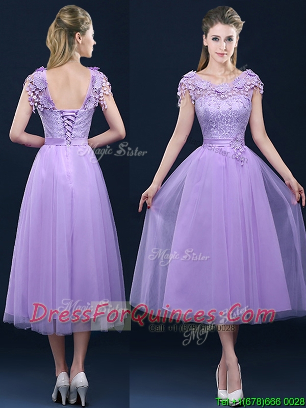 New Style Cap Sleeves Lavender Dama Dresses with Lace and Appliques
