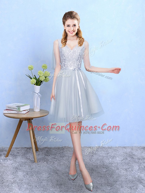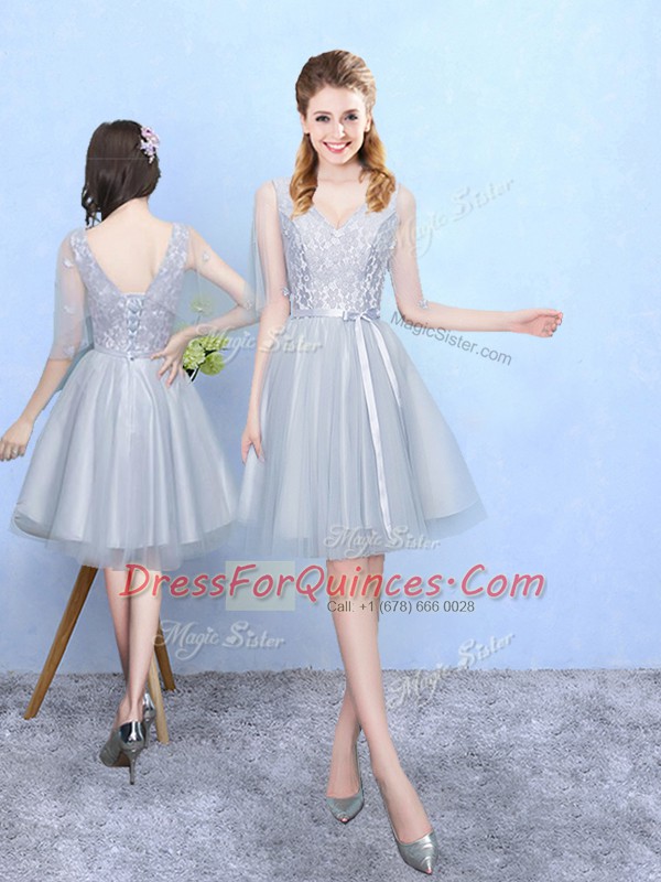 New Style Knee Length Silver Vestidos de Damas V-neck Half Sleeves Lace Up