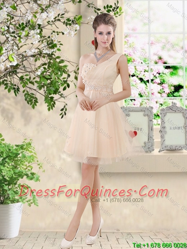 New Style Strapless Appliques and Belt Dama Dresses in Champagne