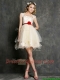 New Style Straps Short Dama Dresses with Belt and Appliques