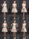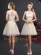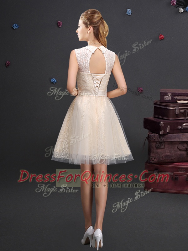 Noble Tulle High-neck Sleeveless Lace Up Lace and Appliques and Belt Quinceanera Court of Honor Dress in Champagne