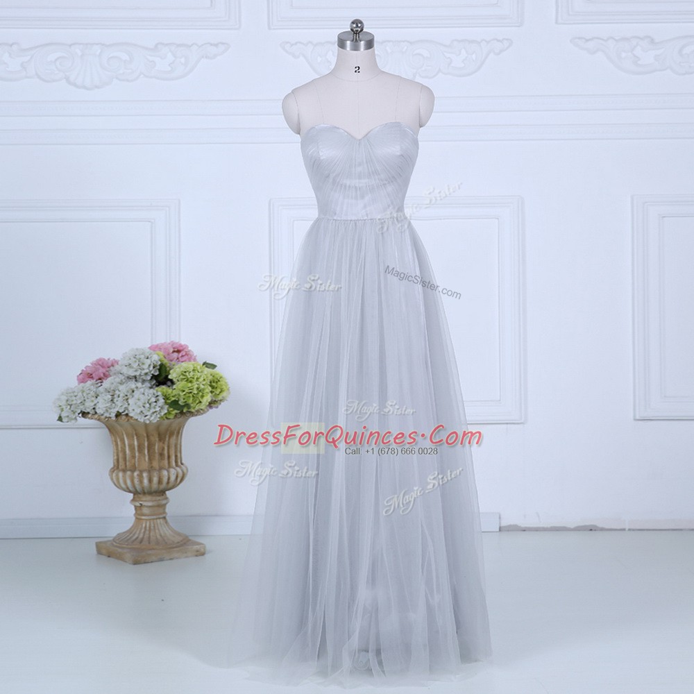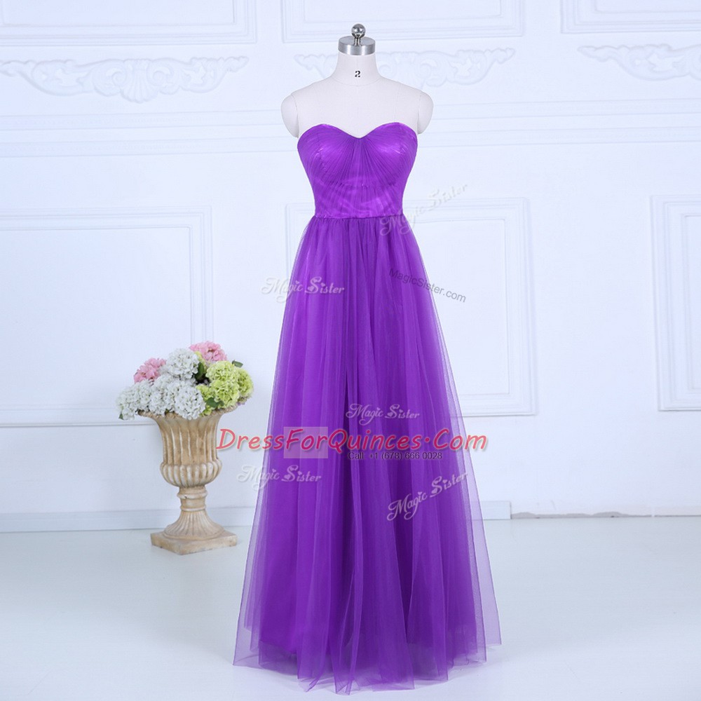 Peach Sleeveless Ruching Floor Length Vestidos de Damas