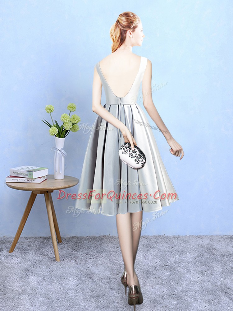 Scoop Sleeveless Satin Court Dresses for Sweet 16 Appliques Backless