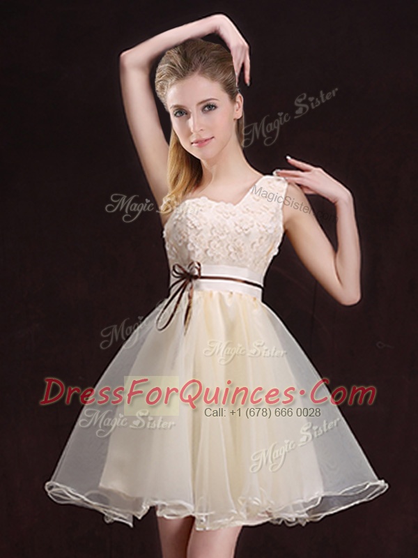 Shining One Shoulder Sleeveless Organza Dama Dress Appliques and Belt Lace Up