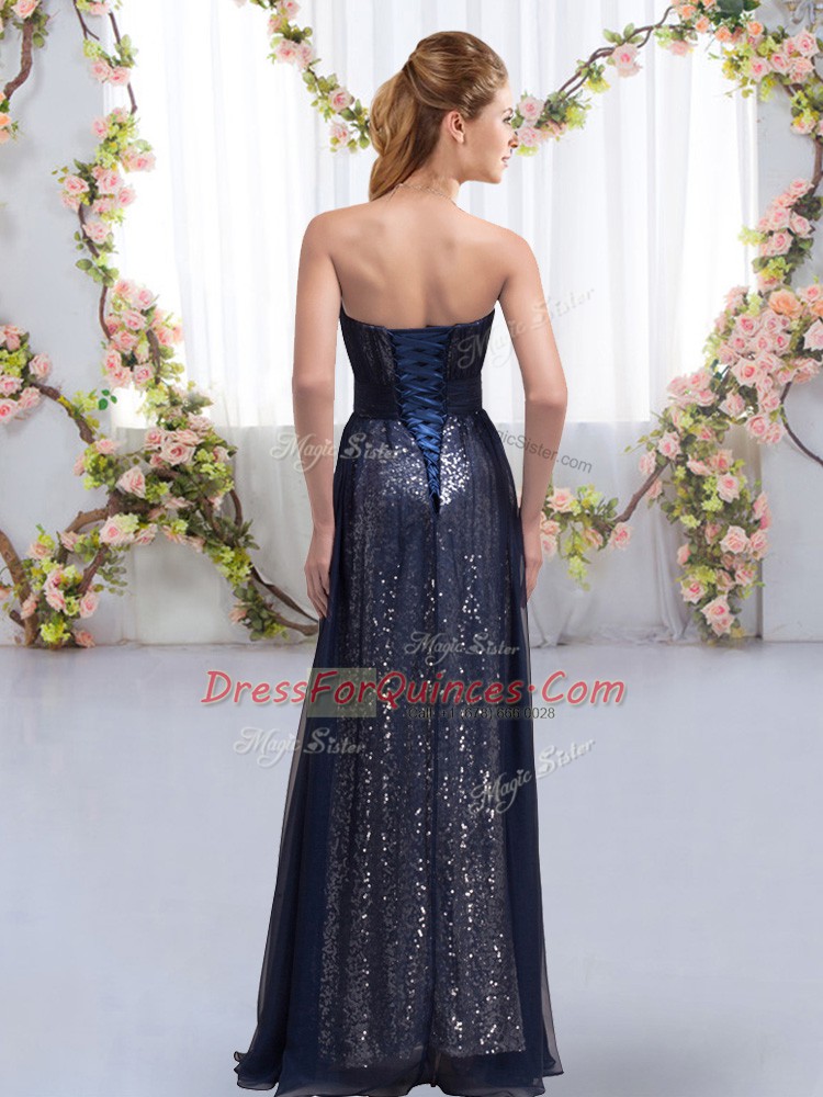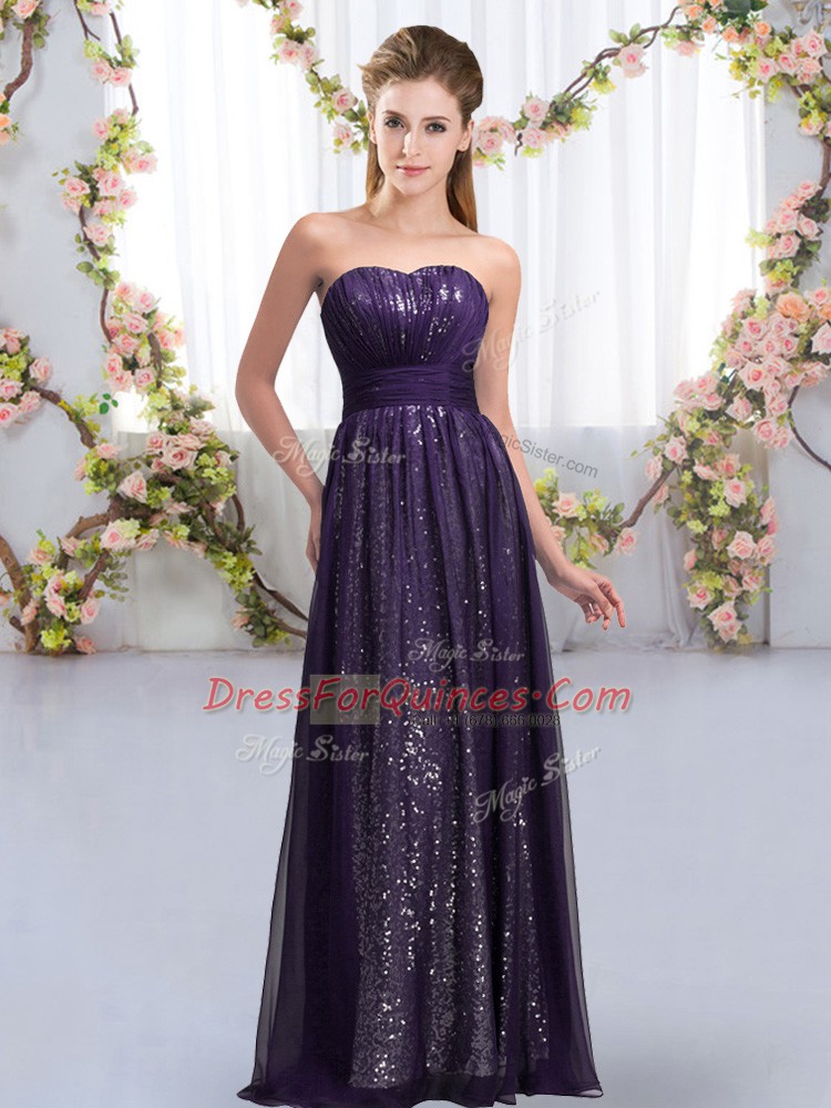 Sleeveless Chiffon and Sequined Floor Length Lace Up Dama Dress in Dark Purple with Sequins