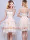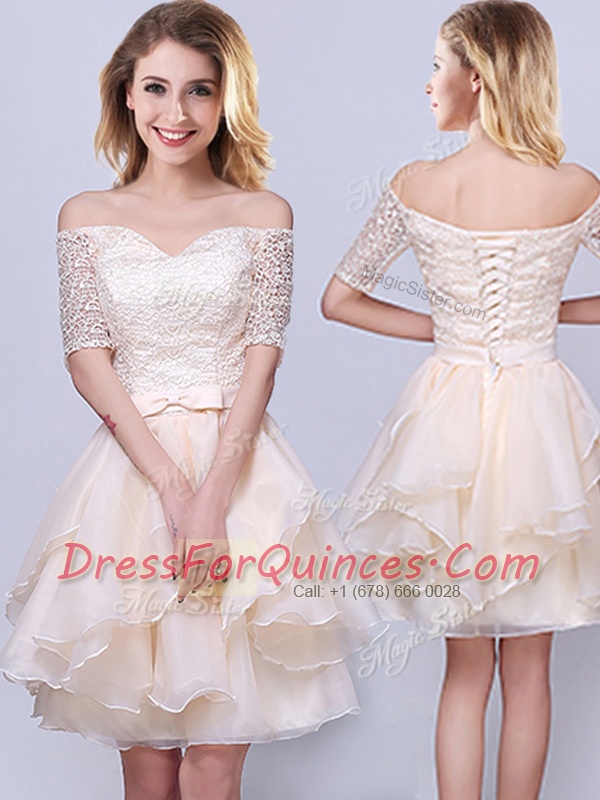 Sleeveless Mini Length Lace and Ruffles and Belt Lace Up Quinceanera Court of Honor Dress with Champagne