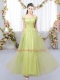 Super Yellow Green Empire Lace Dama Dress for Quinceanera Lace Up Tulle Sleeveless Floor Length