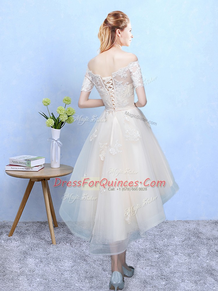 White A-line Off The Shoulder Sleeveless Organza High Low Lace Up Appliques Court Dresses for Sweet 16