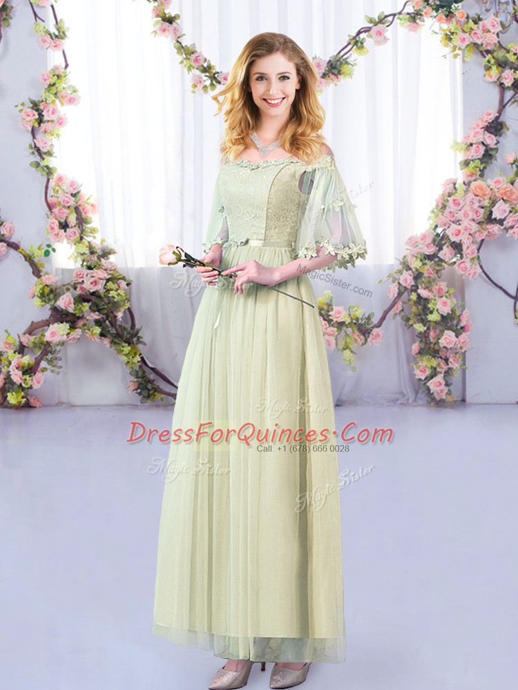 Yellow Green Off The Shoulder Neckline Lace and Belt Vestidos de Damas Half Sleeves Side Zipper
