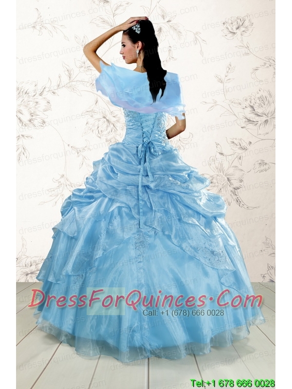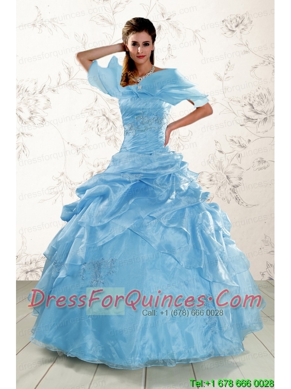2015 Brand New Aqua Blue Quinceanera Dresses with Appliques